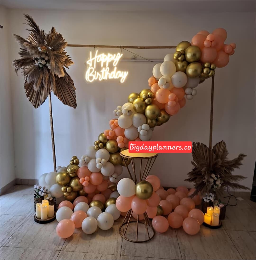 The warm, earthy tones of the pampas grass paired with muted or metallic balloon shades (like beige, blush, ivory, or gold) create a calming yet luxurious vibe. Whether you’re going for rustic elegance or modern minimalism, this decor delivers effortless beauty with a high-end feel.